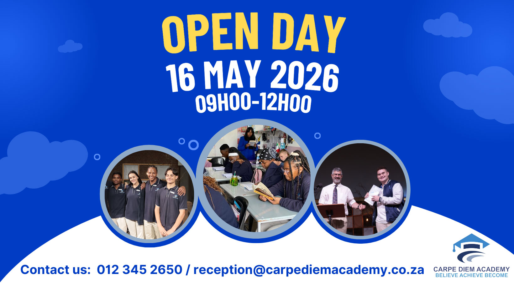 At Carpé Diem Academy we live by our motto ACHIEVE, BELIEVE and BECOME